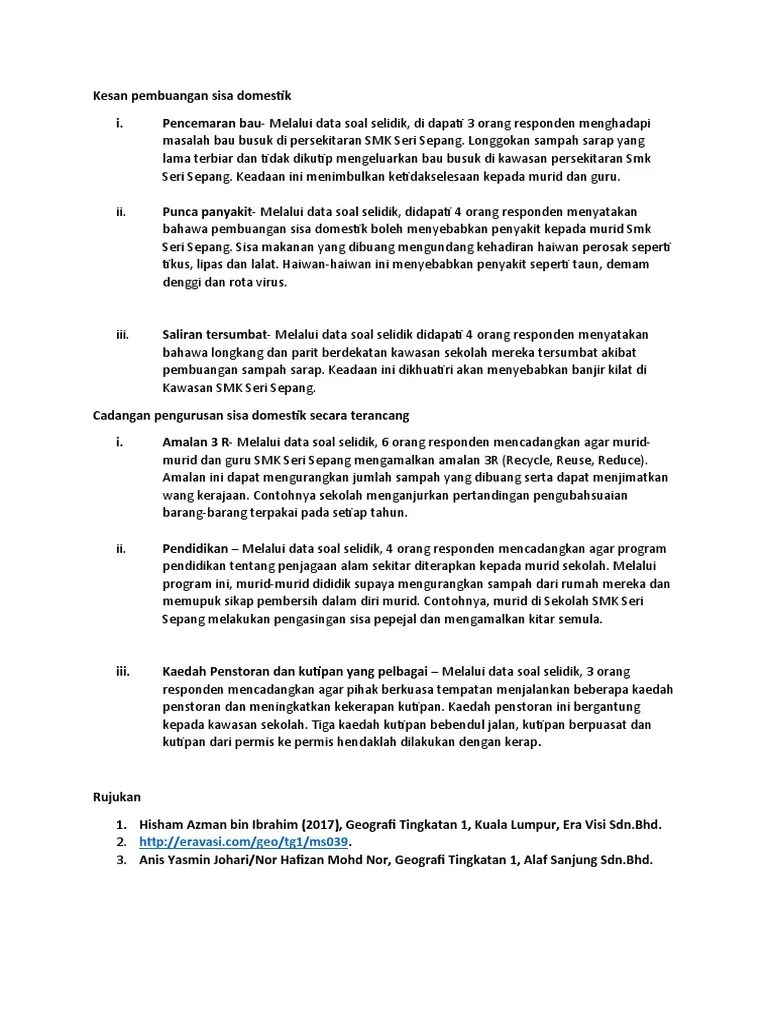 Punca berlakunya pembuangan sisa domestik tingkatan 1. Borang soal selidik personalized items tina person. Kerja lapangan geogragi tingkatan 1 by hmolaham. You have just read the article entitled punca pembuangan sisa domestik tingkatan 1. You can also bookmark this page with the url . You have just read the article entitled punca pembuangan sisa domestik tingkatan 1. Check spelling or type a new query. Mengkaji kesan kesan sisa domestik Mengenal pasti punca punca pembuangan sisa domestik 4. Kesan pembuangan sampah terhadap alam sekitar. Punca pembuangan sisa domestik di kawasan kajian.